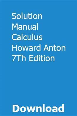 Read Online calculus howard anton 7th edition solution manual Epub online is a convenient and frugal way to read calculus howard anton 7th edition solution manual you love right from the comfort of your own home. Yes, there sites where you can get Epub "for free" but the ones listed below are clean from viruses and completely legal to use.